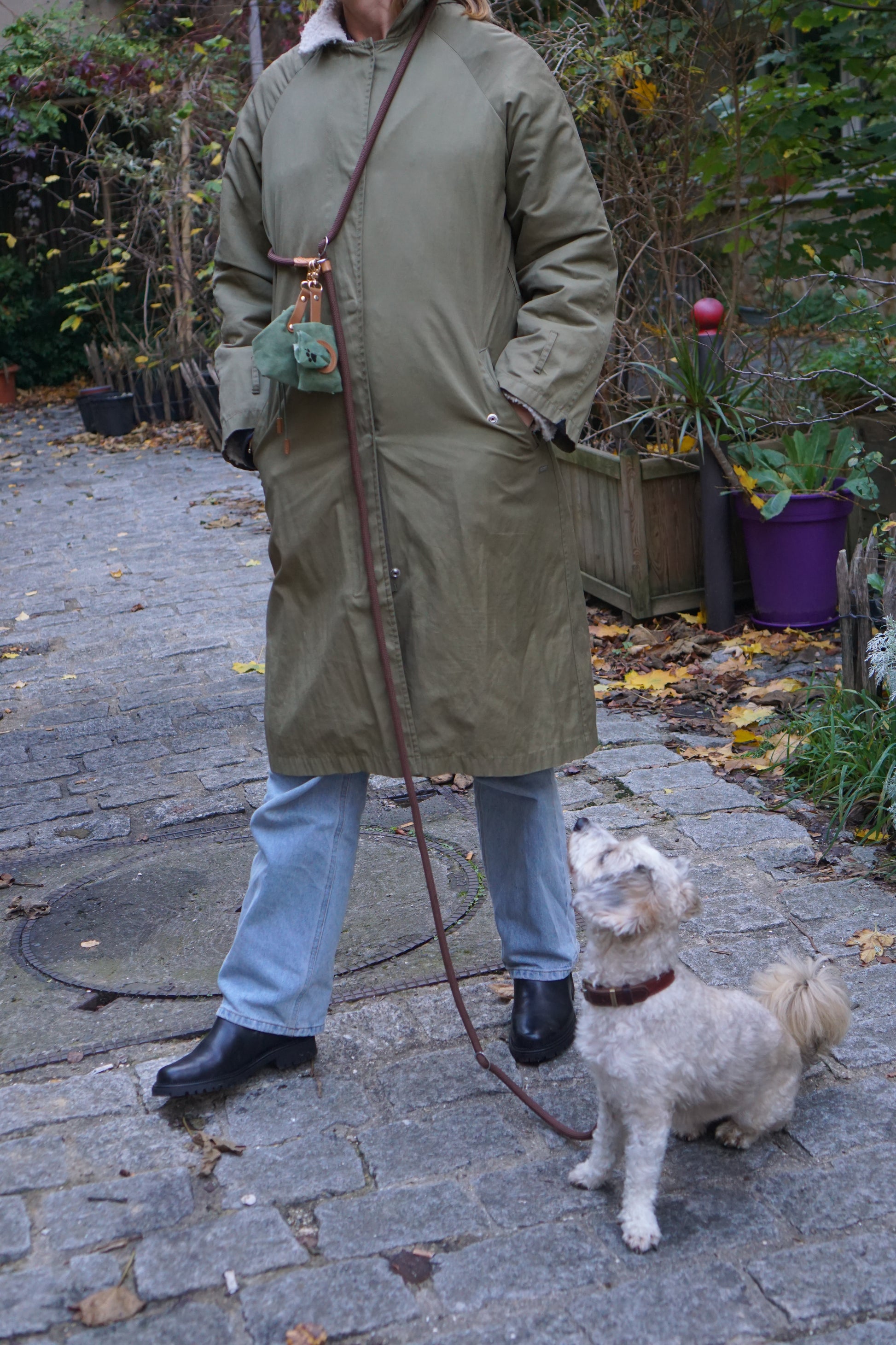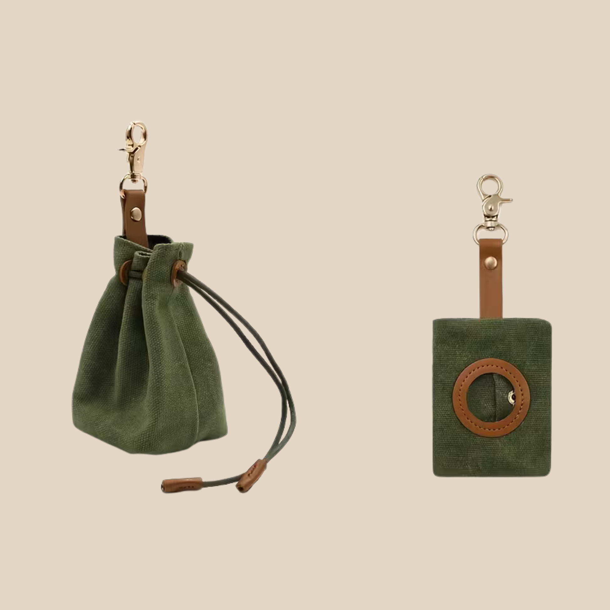 Our Dog Food & Poop Bag Combo Set keeps every walk beautifully organized — one pouch for treats or kibble, the other for waste bags.